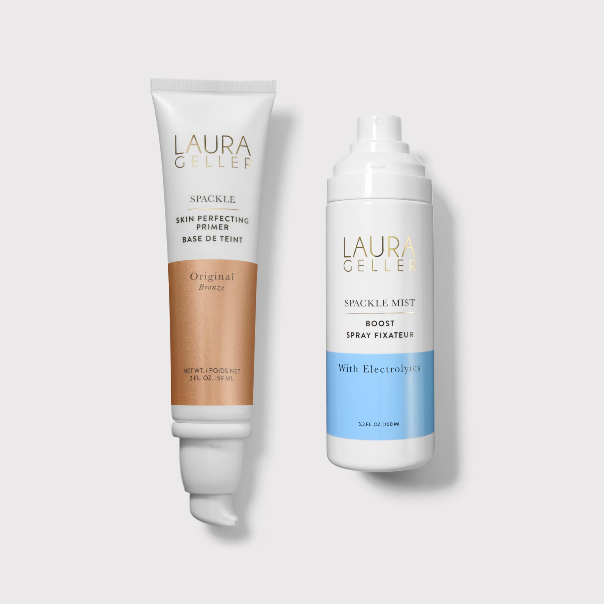 Each spritz of our provides a restorative, electrolyte-charged burst of hydration while locking in your makeup and defending against blue light pollution. Prep, refresh and protect your complexion with your choice of Spackle primer + Spackle face mist!